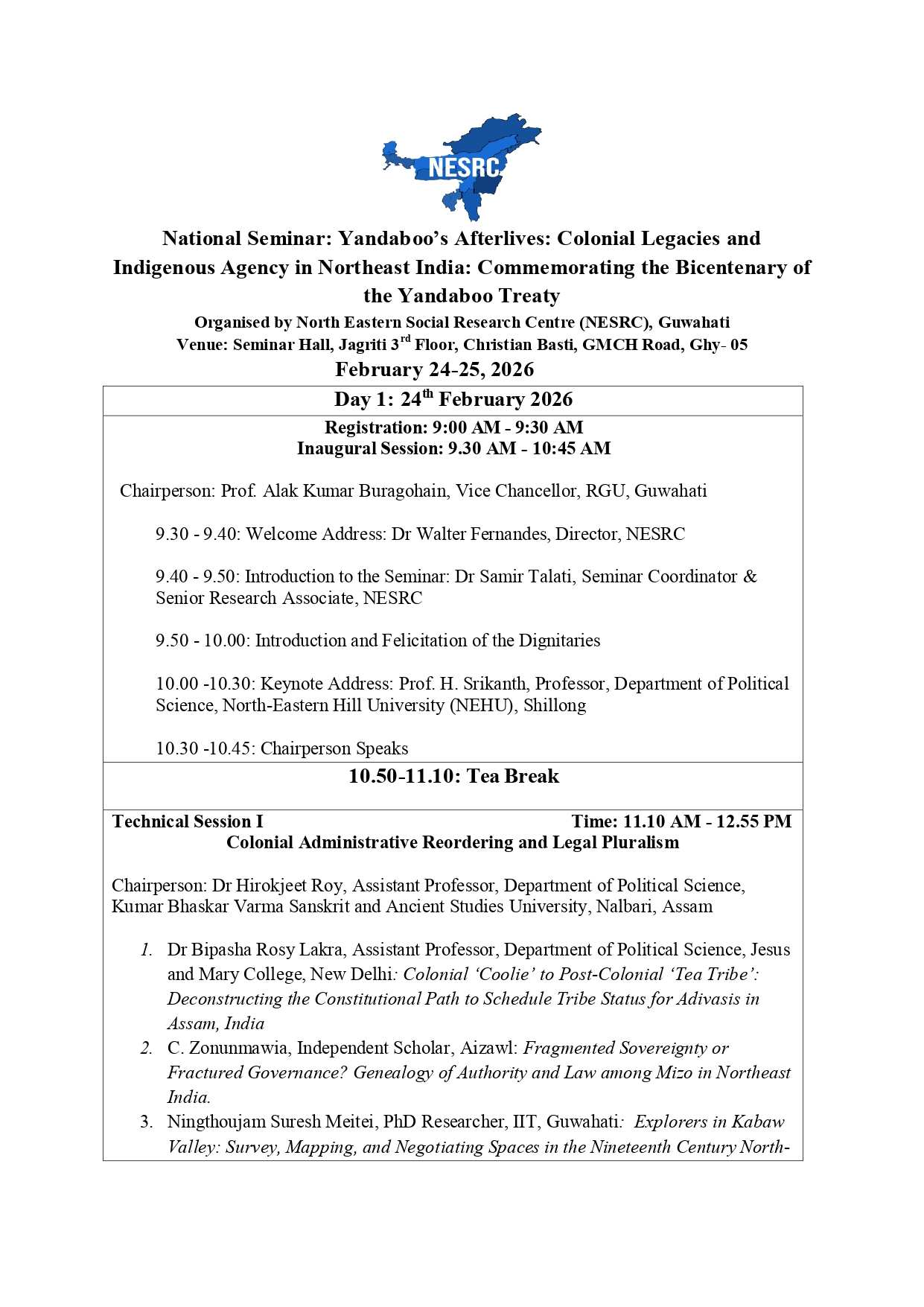 North Eastern Social Research Centre, (NESRC) September 6-7, 2024 Concept Note